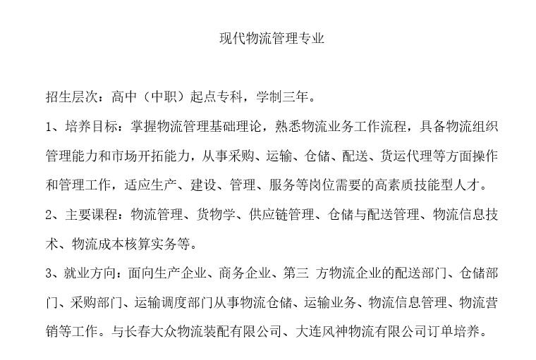 現代物流管理專業